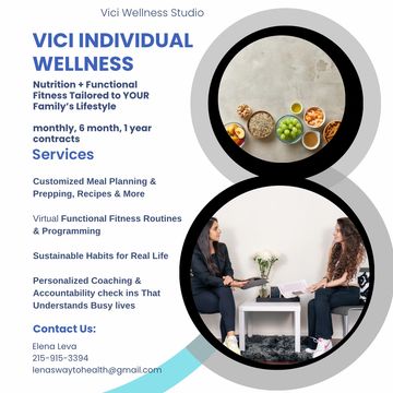 Work with Nutritionist Elena for Nutrition education including meal planning, macronutrient and calorie estimates and weekly coaching check ins. Elena has a referral network of health practitioners to consult with for comprehensive health.